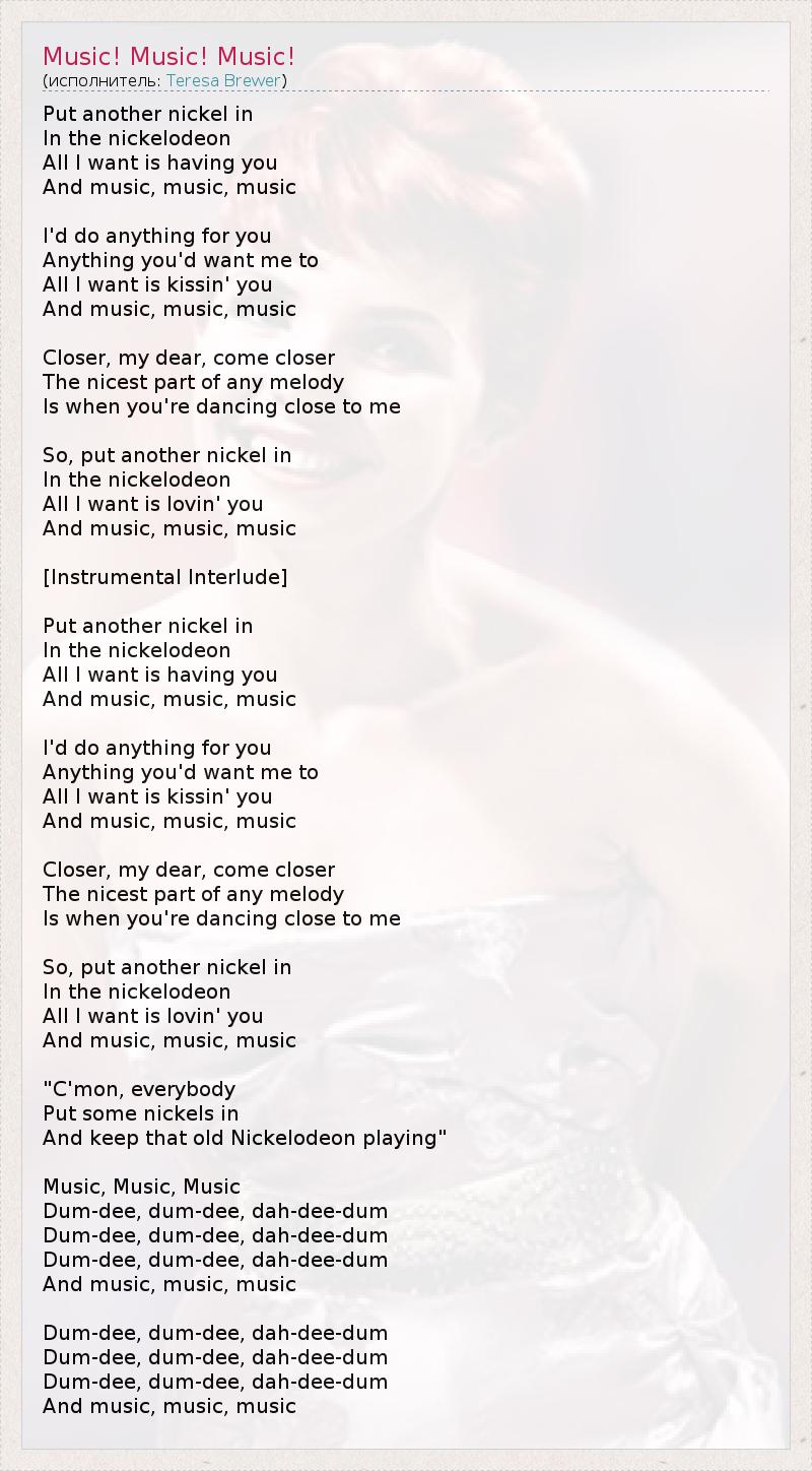 А как ты думаешь, о чем песня "Music! Music! Music!" ?