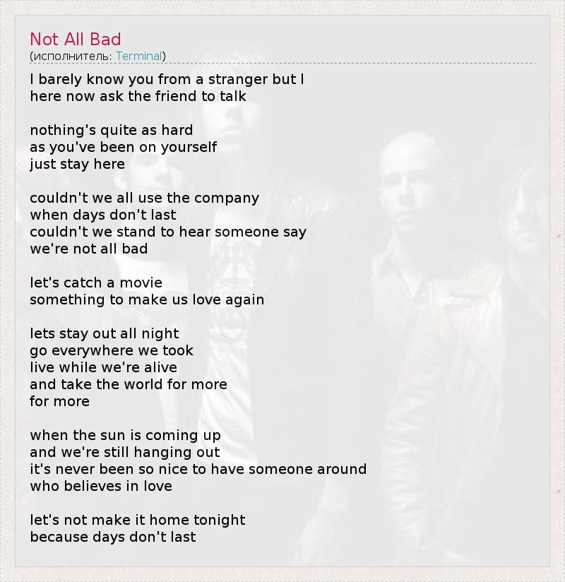 А как ты думаешь, о чем песня "Not All Bad" ?
