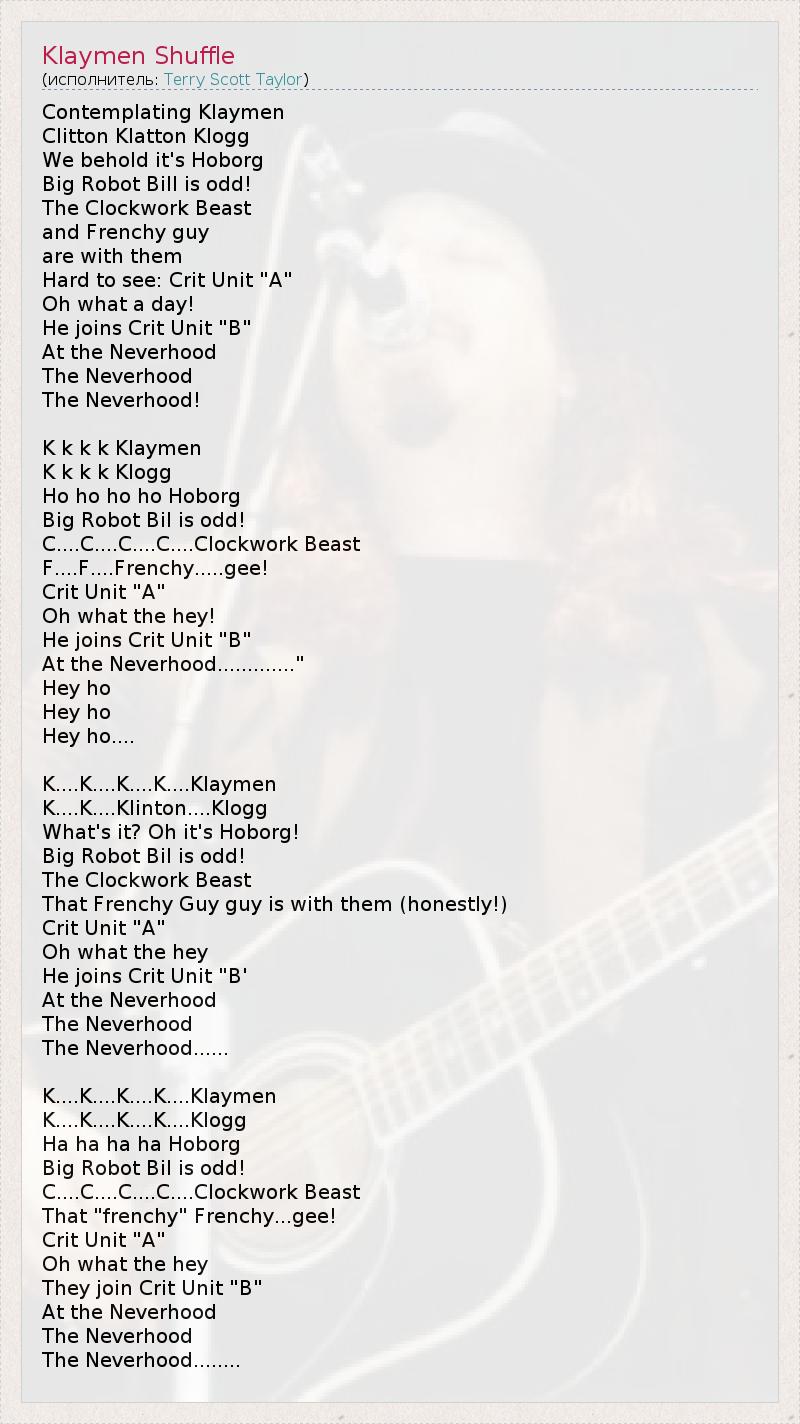 А как ты думаешь, о чем песня "Klaymen Shuffle" ?