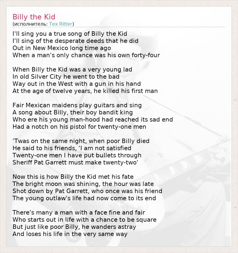 А как ты думаешь, о чем песня "Billy the Kid" ?
