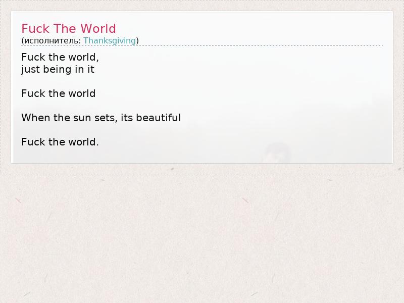А как ты думаешь, о чем песня "Fuck The World" ?
