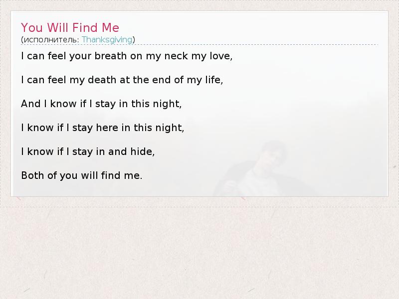 А как ты думаешь, о чем песня "You Will Find Me" ?