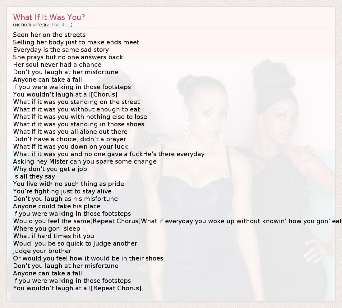 А как ты думаешь, о чем песня "What If It Was You?" ?