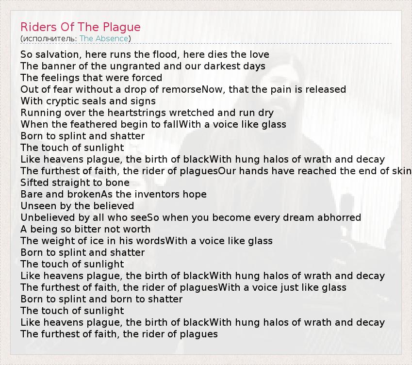 А как ты думаешь, о чем песня "Riders Of The Plague" ?
