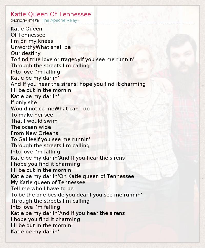 А как ты думаешь, о чем песня "Katie Queen Of Tennessee" ?
