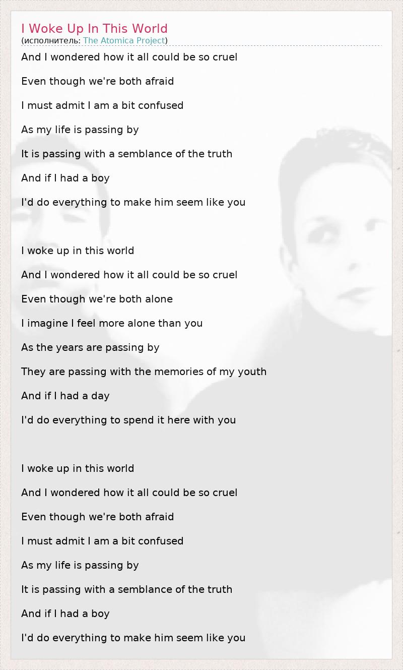 А как ты думаешь, о чем песня "I Woke Up In This World" ?