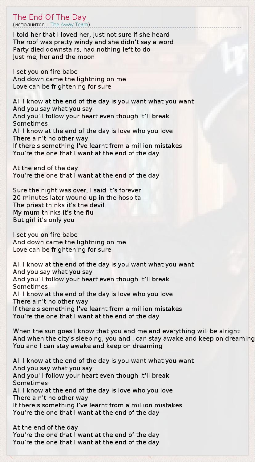 А как ты думаешь, о чем песня "The End Of The Day" ?