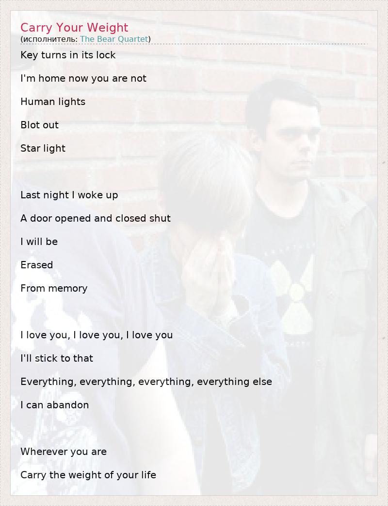 А как ты думаешь, о чем песня "Carry Your Weight" ?