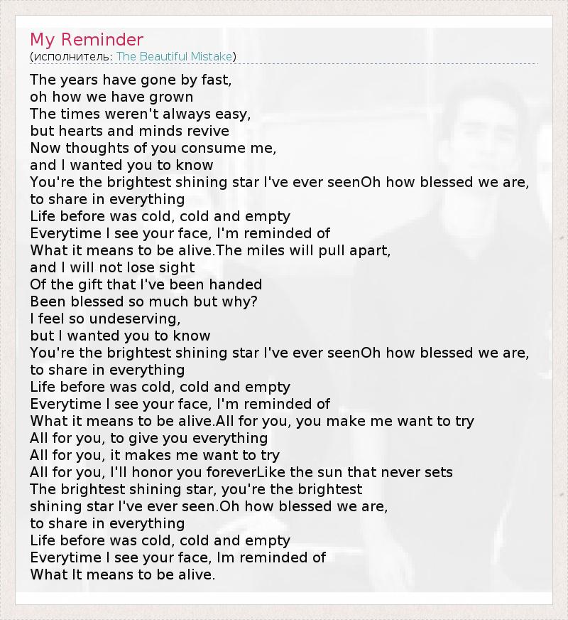 Это интересно:The Beautiful Mistake, группа из Сан Диего, Калифорния, основана в 2000м году, выпущенно 2 альбома дебютный - "Light A Match, For I Deserve To Burn" в 2002м, 2ой - "This Is Who You Are" в 2004м.дискографияDecember EP The Beautiful Mistake (EP) Light a Match, For I Deserve to Burn This Is Who You Are The Beautiful Mistake & Ettison Clio (Split EP) оффициальный сайт - thebeautifulmistake.commyspace - myspace.com/thebeautifulmistake