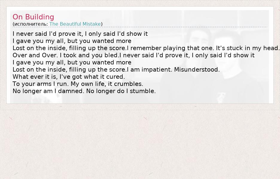 А как ты думаешь, о чем песня "On Building" ?