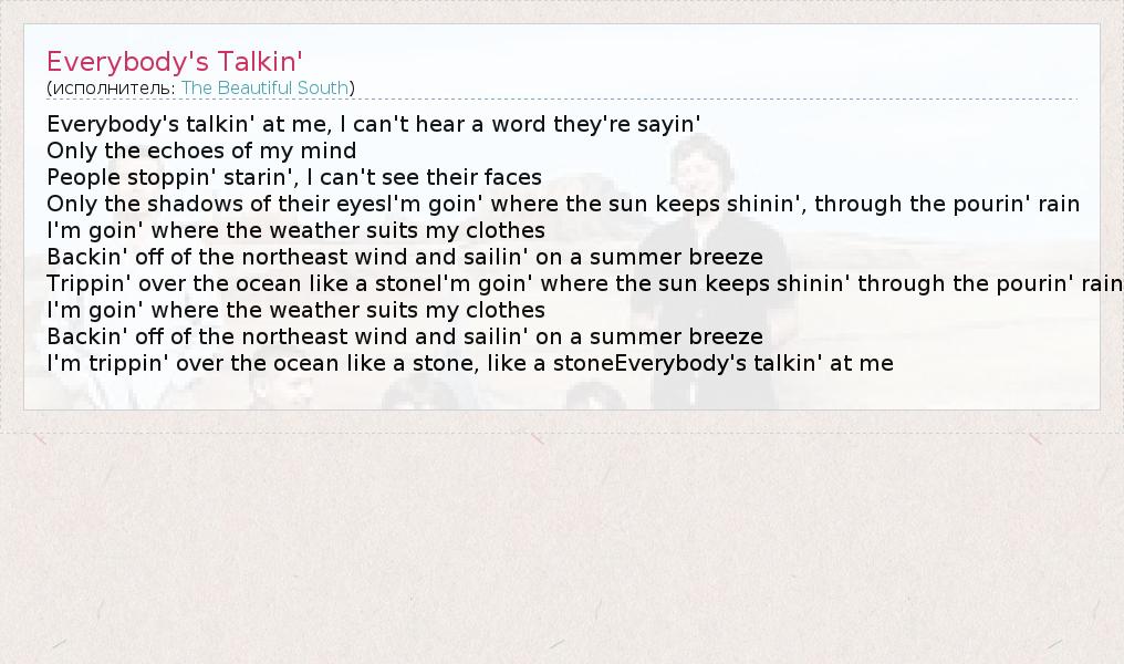 А как ты думаешь, о чем песня "Everybody's Talkin'" ?