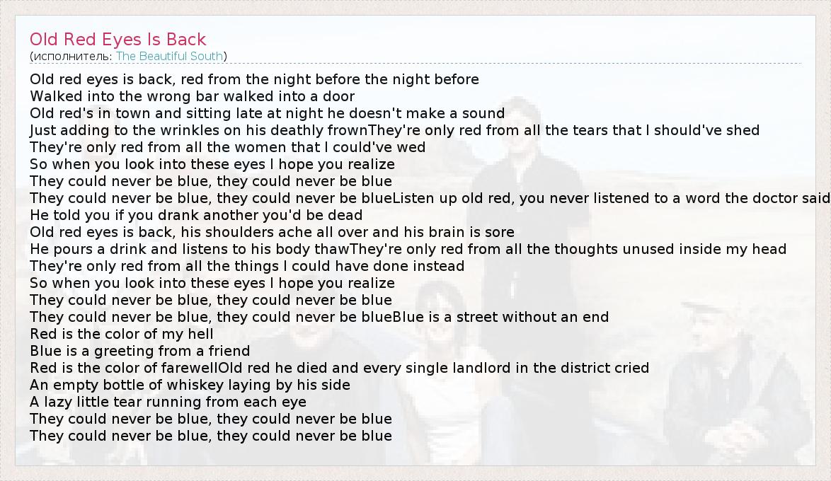 А как ты думаешь, о чем песня "Old Red Eyes Is Back" ?