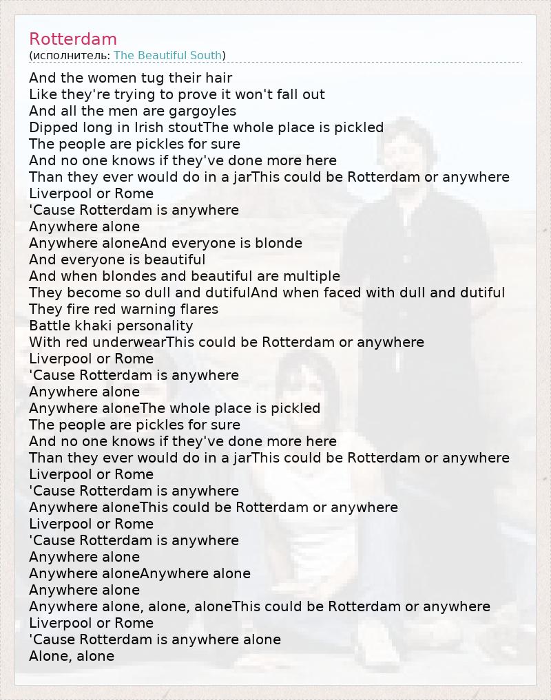 А как ты думаешь, о чем песня "Rotterdam" ?
