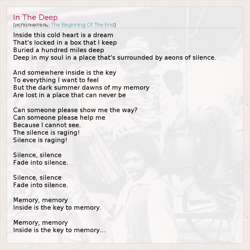 А как ты думаешь, о чем песня "In The Deep" ?