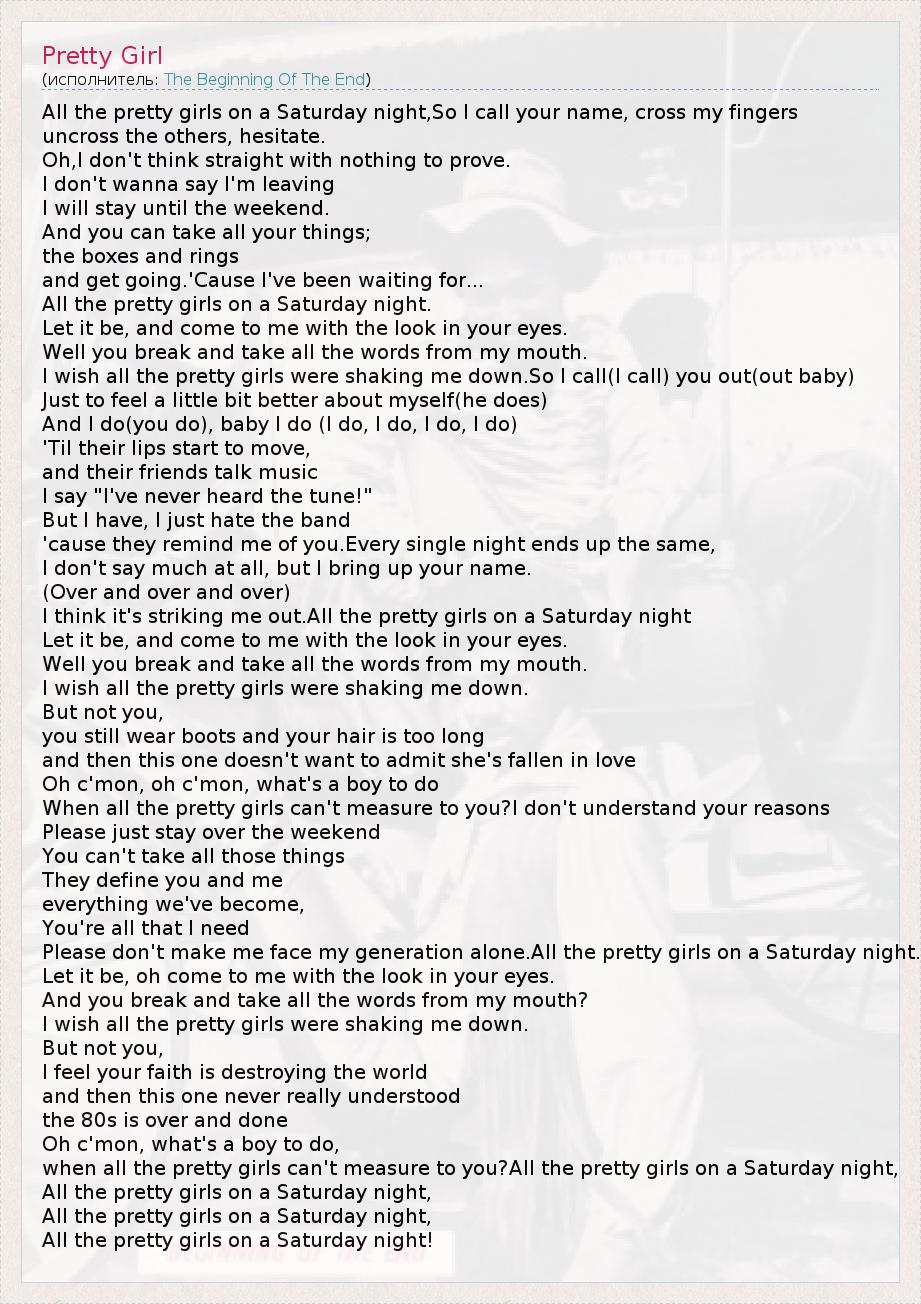 А как ты думаешь, о чем песня "Pretty Girl" ?