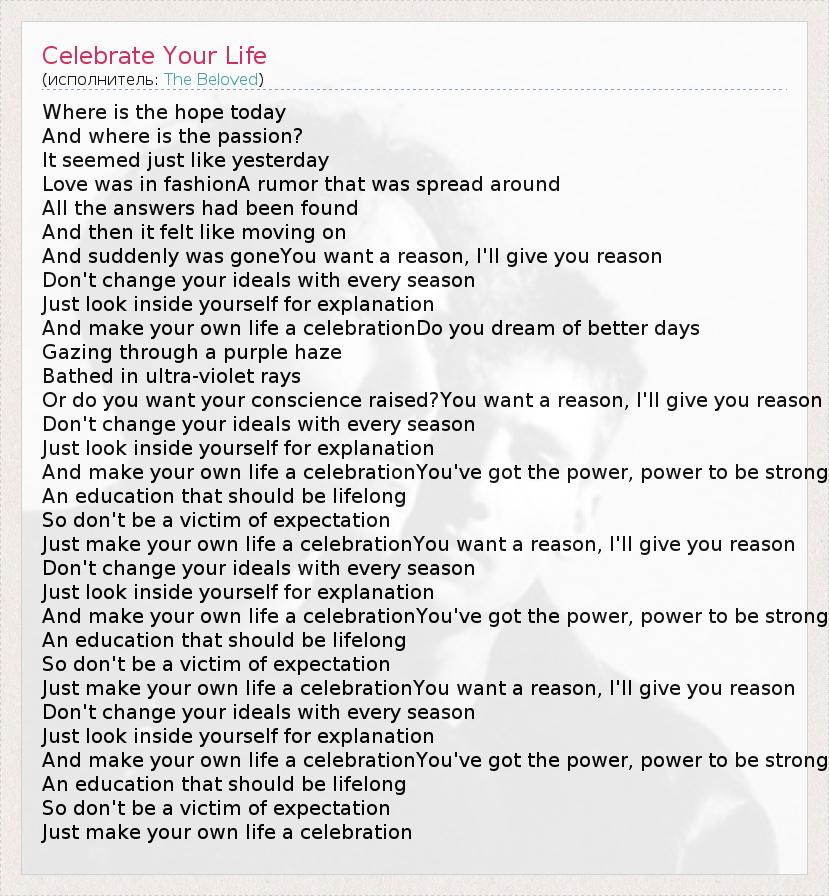А как ты думаешь, о чем песня "Celebrate Your Life" ?