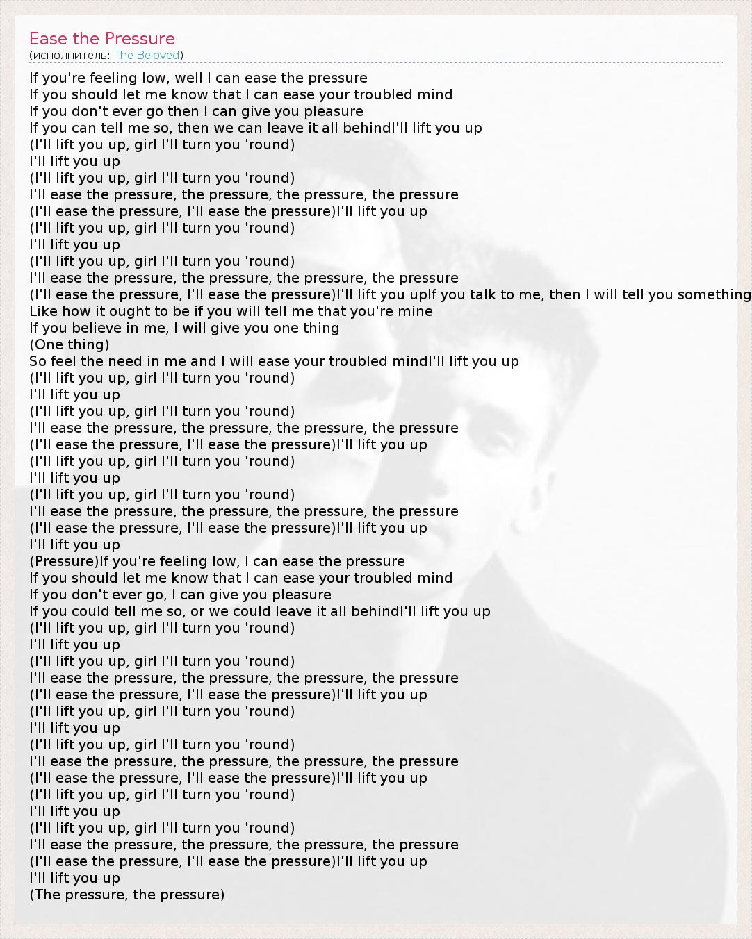 А как ты думаешь, о чем песня "Ease the Pressure" ?