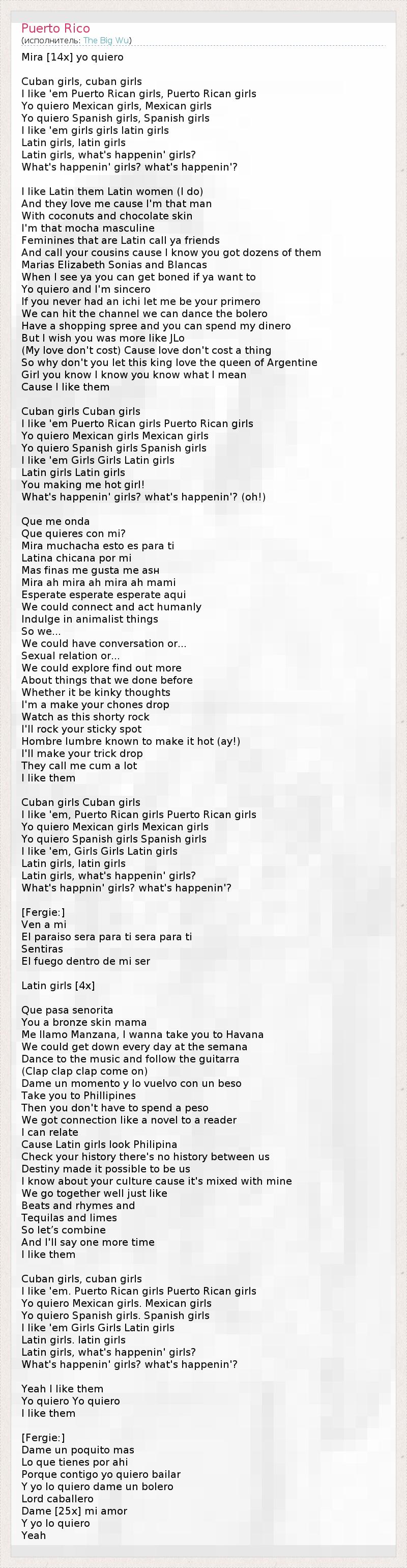 I like 'em Puerto Rican girls, Puerto Rican girls