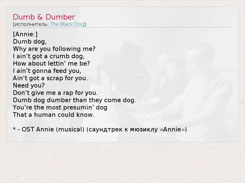 А как ты думаешь, о чем песня "Dumb & Dumber" ?