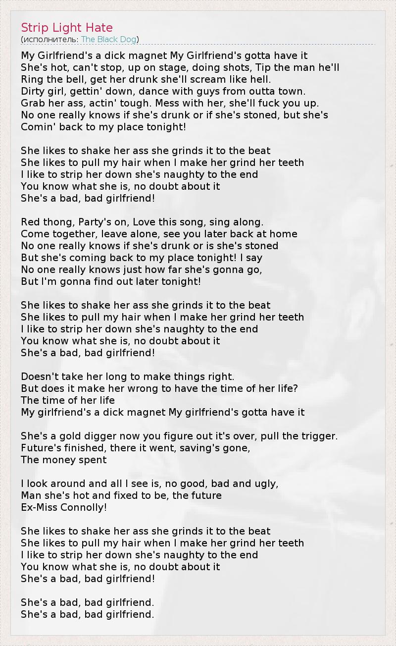 А как ты думаешь, о чем песня "Strip Light Hate" ?