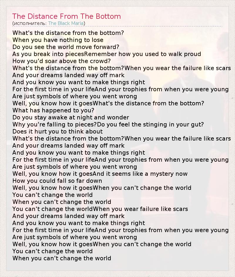 А как ты думаешь, о чем песня "The Distance From The Bottom" ?