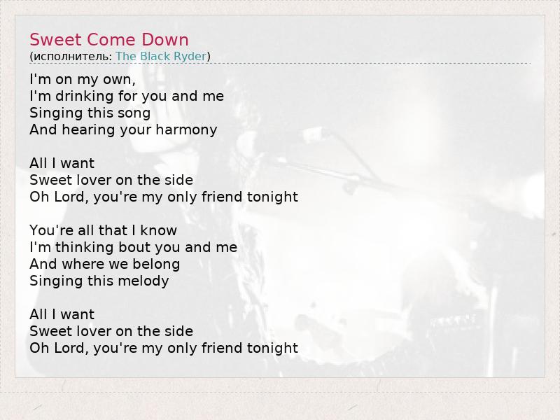 А как ты думаешь, о чем песня "Sweet Come Down" ?