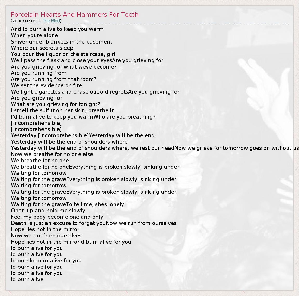 А как ты думаешь, о чем песня "Porcelain Hearts And Hammers For Teeth" ?