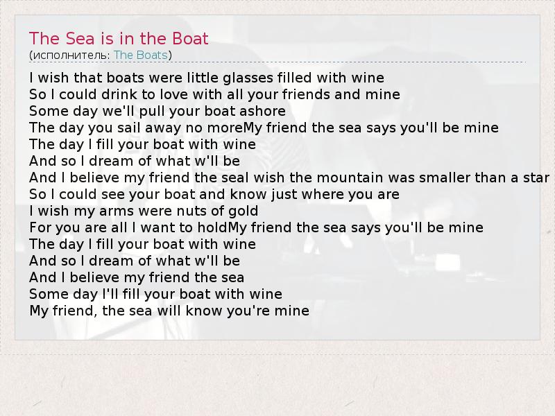 А как ты думаешь, о чем песня "The Sea is in the Boat" ?