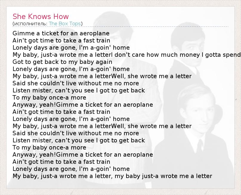 Anyway, yeah!Gimme a ticket for an aeroplane