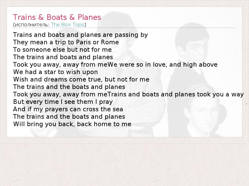 ГлавнаяИсполнителиThe Box TopsTrains & Boats & Planes