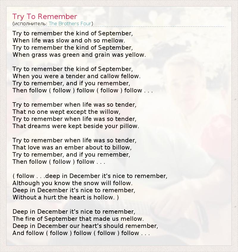 А как ты думаешь, о чем песня "Try To Remember" ?