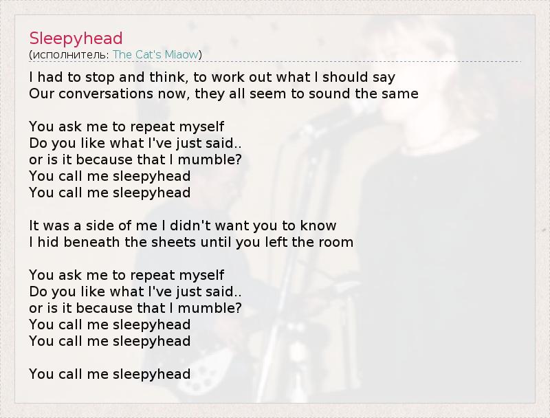 А как ты думаешь, о чем песня "Sleepyhead" ?