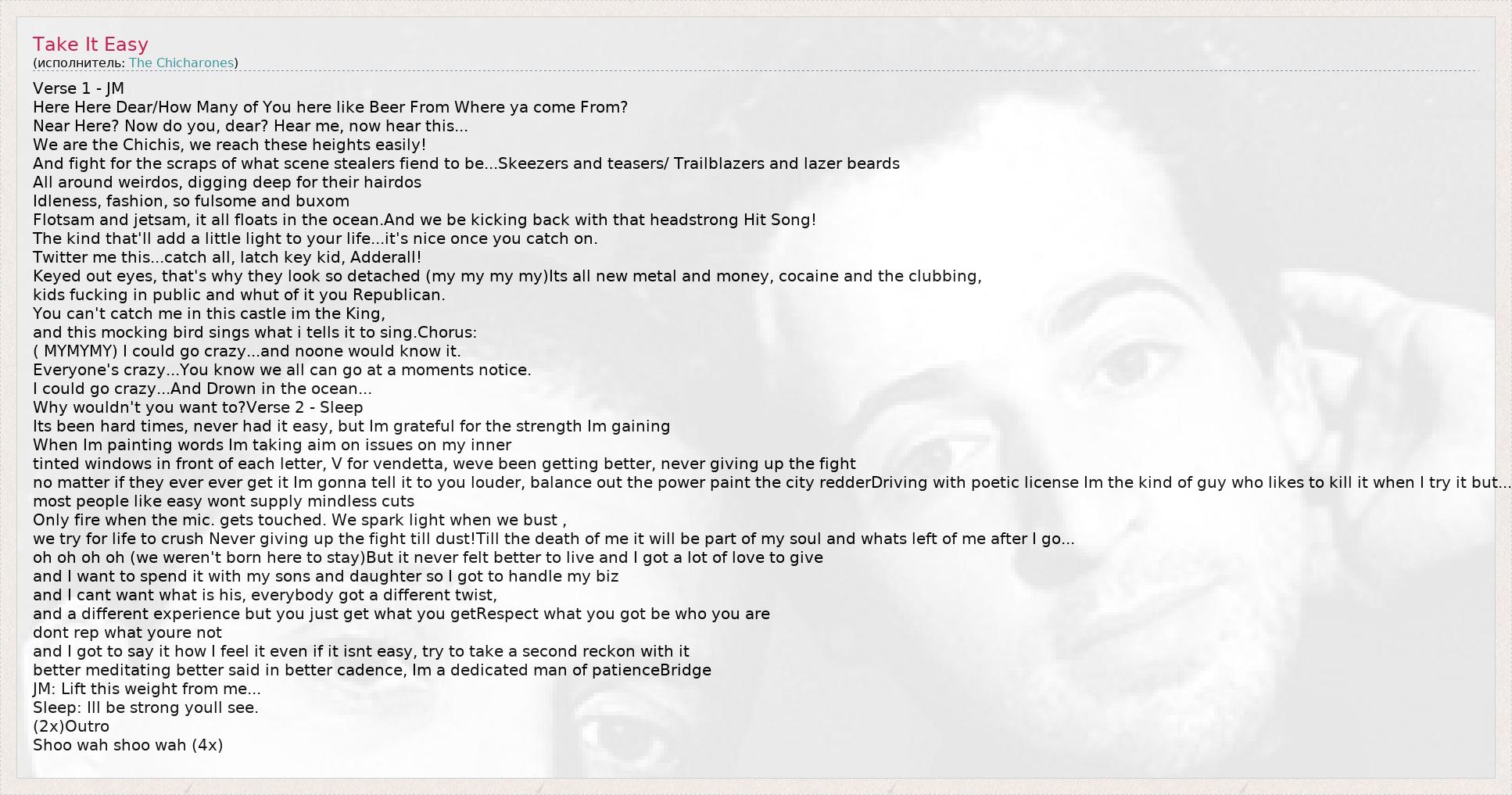 А как ты думаешь, о чем песня "Take It Easy" ?