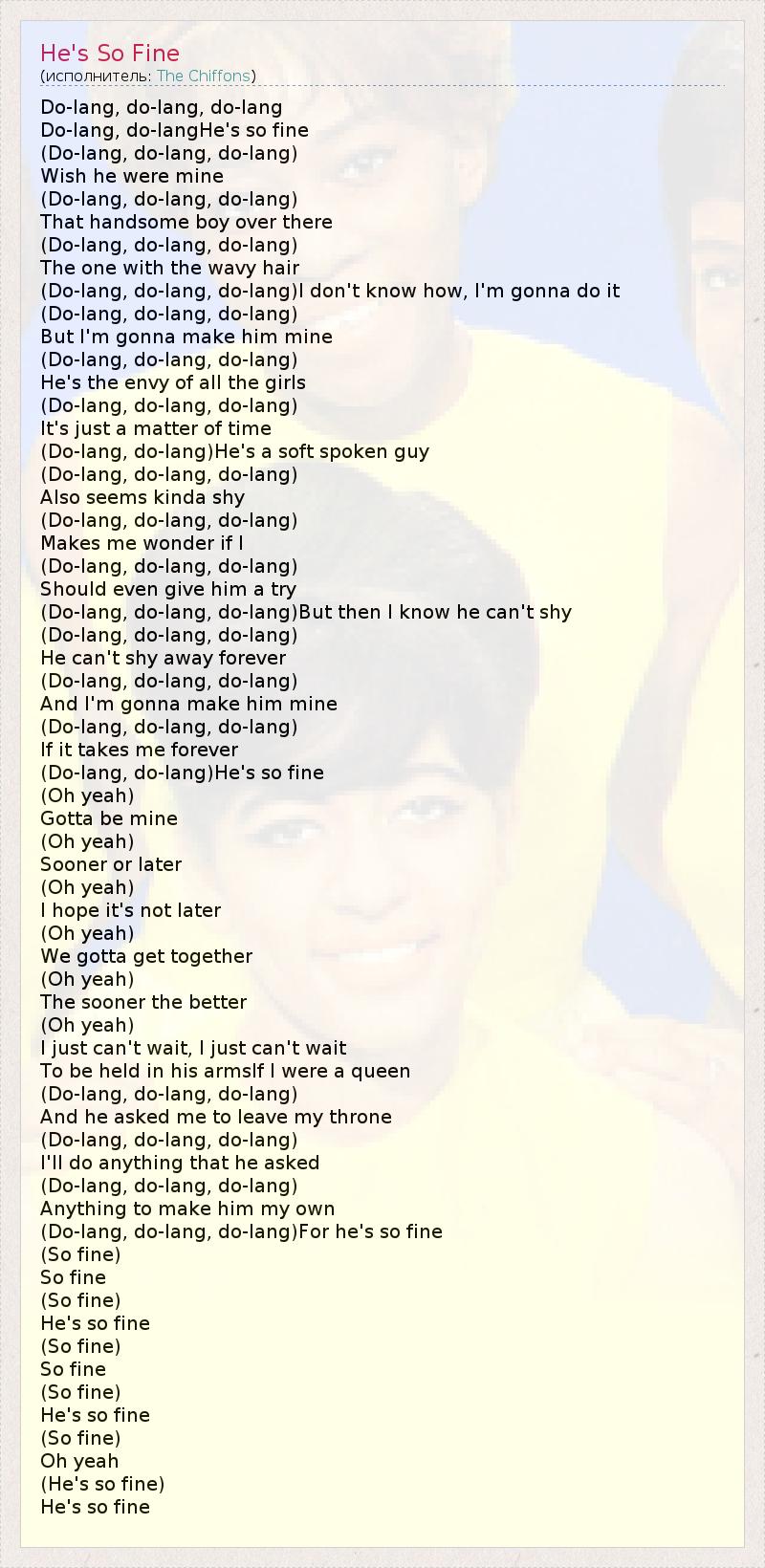 А как ты думаешь, о чем песня "He's So Fine" ?