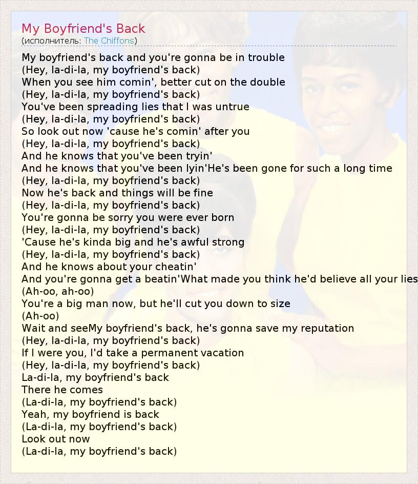 А как ты думаешь, о чем песня "My Boyfriend's Back" ?