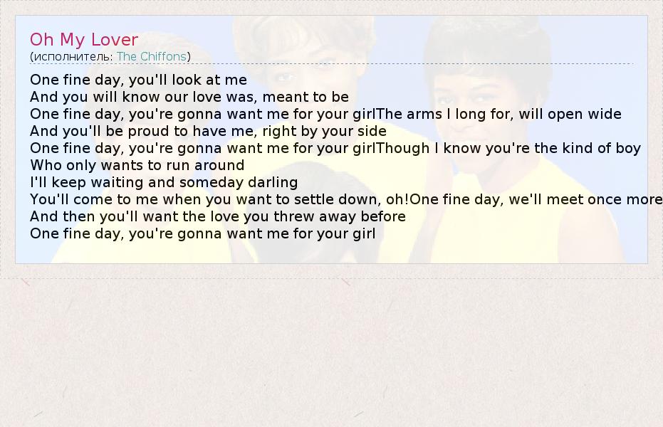 А как ты думаешь, о чем песня "Oh My Lover" ?