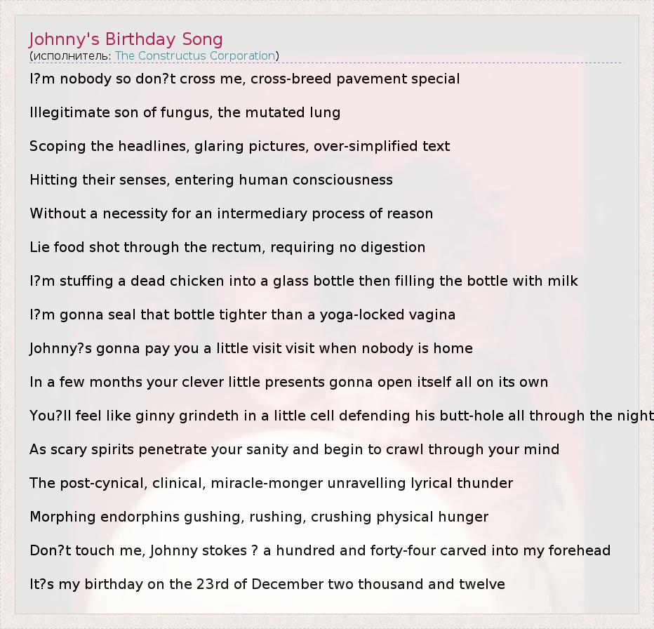 А как ты думаешь, о чем песня "Johnny's Birthday Song" ?