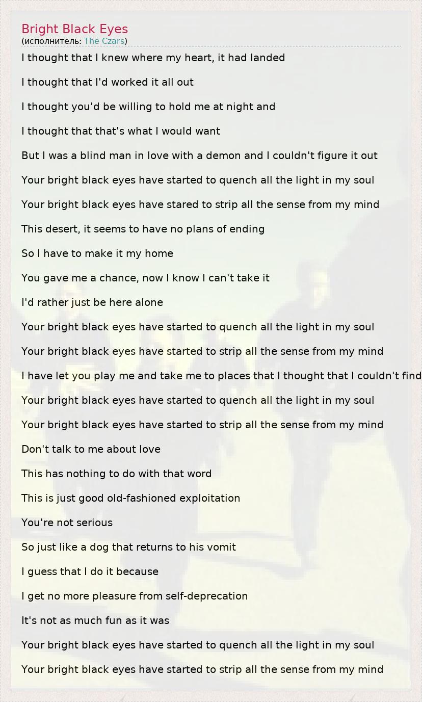 А как ты думаешь, о чем песня "Bright Black Eyes" ?