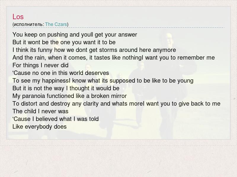 Это интересно:From shuffling west coast pop and crashing electronica to velvelty blues and delicate ballads, Denver's The Czars sound like no other band. They are a unique group who seem to defy categorization taking in everything from eighties guitar drone, shoe-gazing to alt-country. Built around John Grant's vocals and song writing, The Czars reflect his eclectic tastes as diverse as Kraftwerk, Patsy Cline, Tom Waits and Nina Simone. Their haunting yet rousing live performances are more than a match for their acclaimed albums like The Ugly People Vs. The Beautiful People, and Goodbye, the latter of which was in Uncut's Top 50 albums of 2004. The Czars have headlined several tours throughout Europe,... продолжение