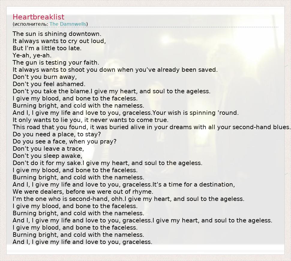 And I, I give my life and love to you, graceless.I give my heart, and soul to the ageless.