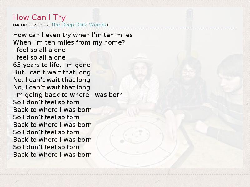 А как ты думаешь, о чем песня "How Can I Try" ?