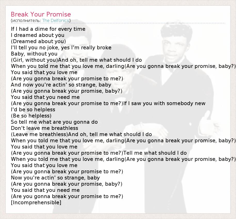 А как ты думаешь, о чем песня "Break Your Promise" ?