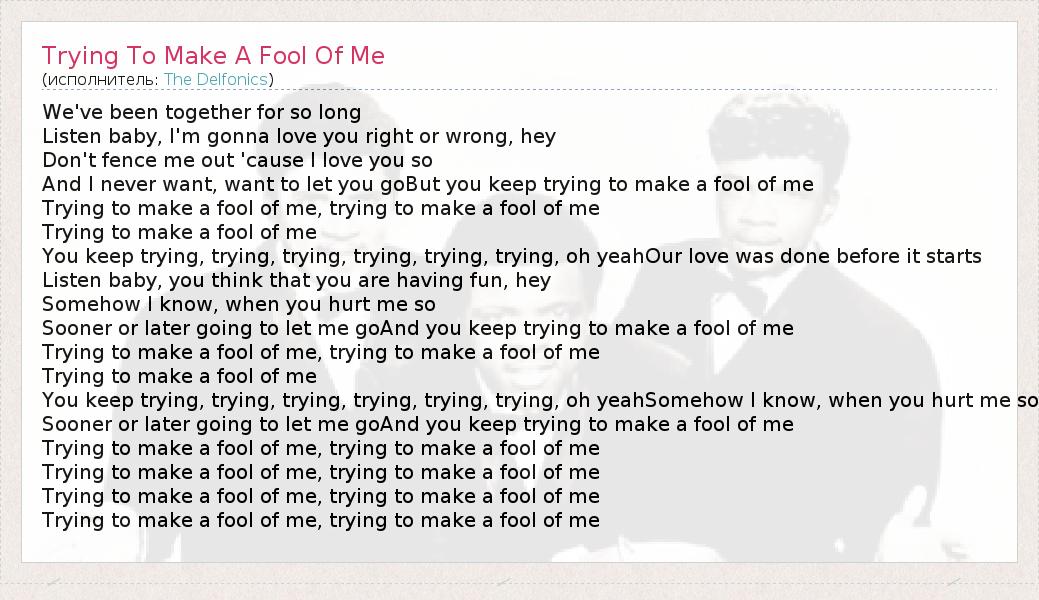 А как ты думаешь, о чем песня "Trying To Make A Fool Of Me" ?