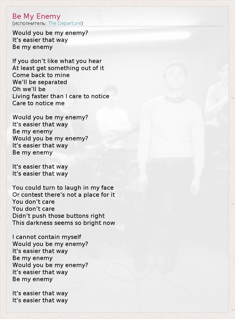 А как ты думаешь, о чем песня "Be My Enemy" ?