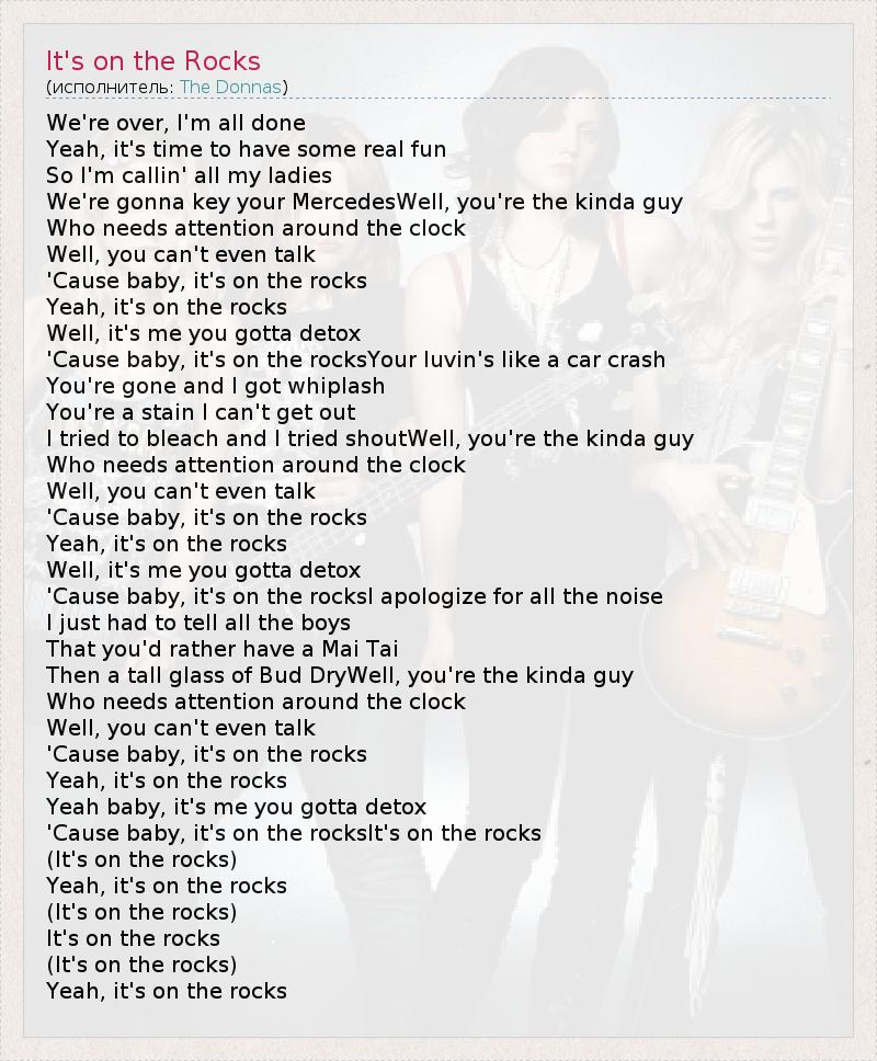 А как ты думаешь, о чем песня "It's on the Rocks" ?