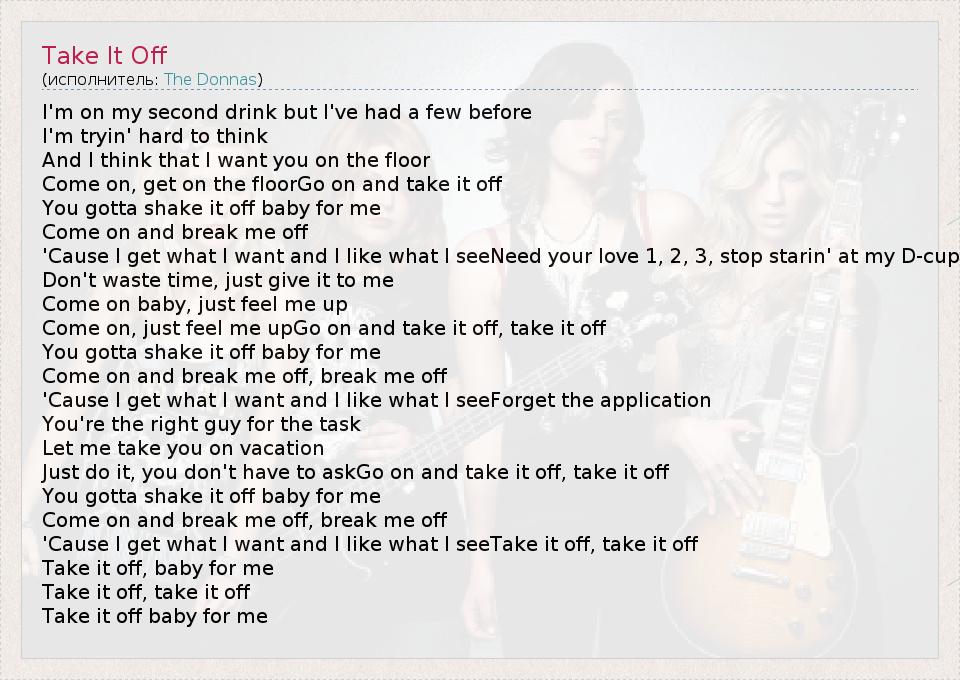 А как ты думаешь, о чем песня "Take It Off" ?