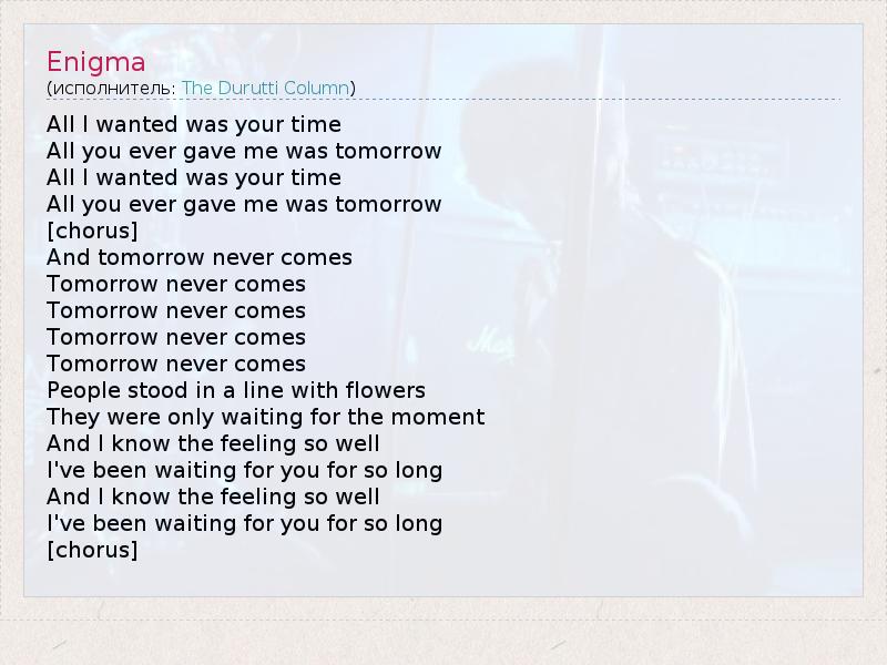 Это интересно:Durutti Column – Колонна Дурутти. Английская пост-панк группа, образованная в 1978 году в графстве Большой Манчестер. История XX века. Времена фашизма. Легендарный командир, борец за свободу Испании, анархист, антифашист Buena Ventura Durutti в 1936 году собрал 6 тысяч сторонников и возглавил поход этой колонны с целью освобождения испанских городов. 60- е годы XX века. Это имя всплывает снова. На этот раз... продолжение