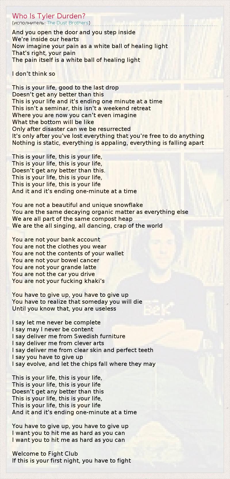 А как ты думаешь, о чем песня "Who Is Tyler Durden?" ?