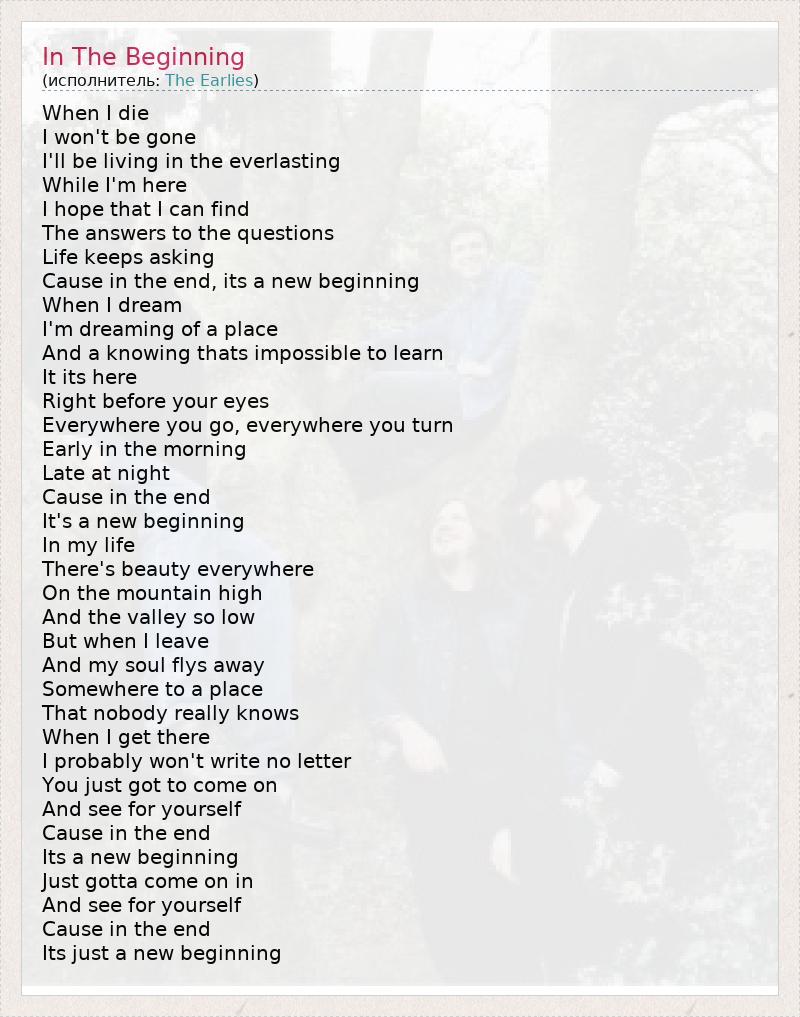 А как ты думаешь, о чем песня "In The Beginning" ?