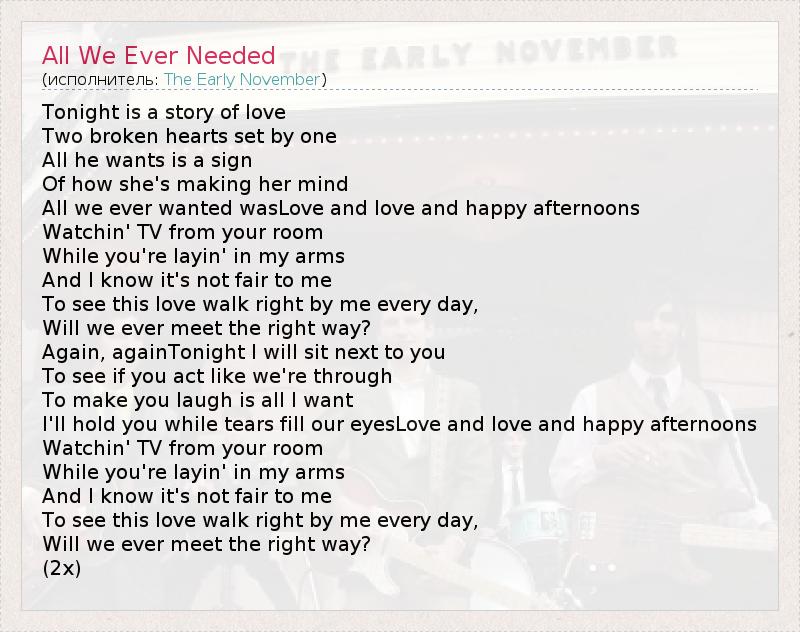 А как ты думаешь, о чем песня "All We Ever Needed" ?